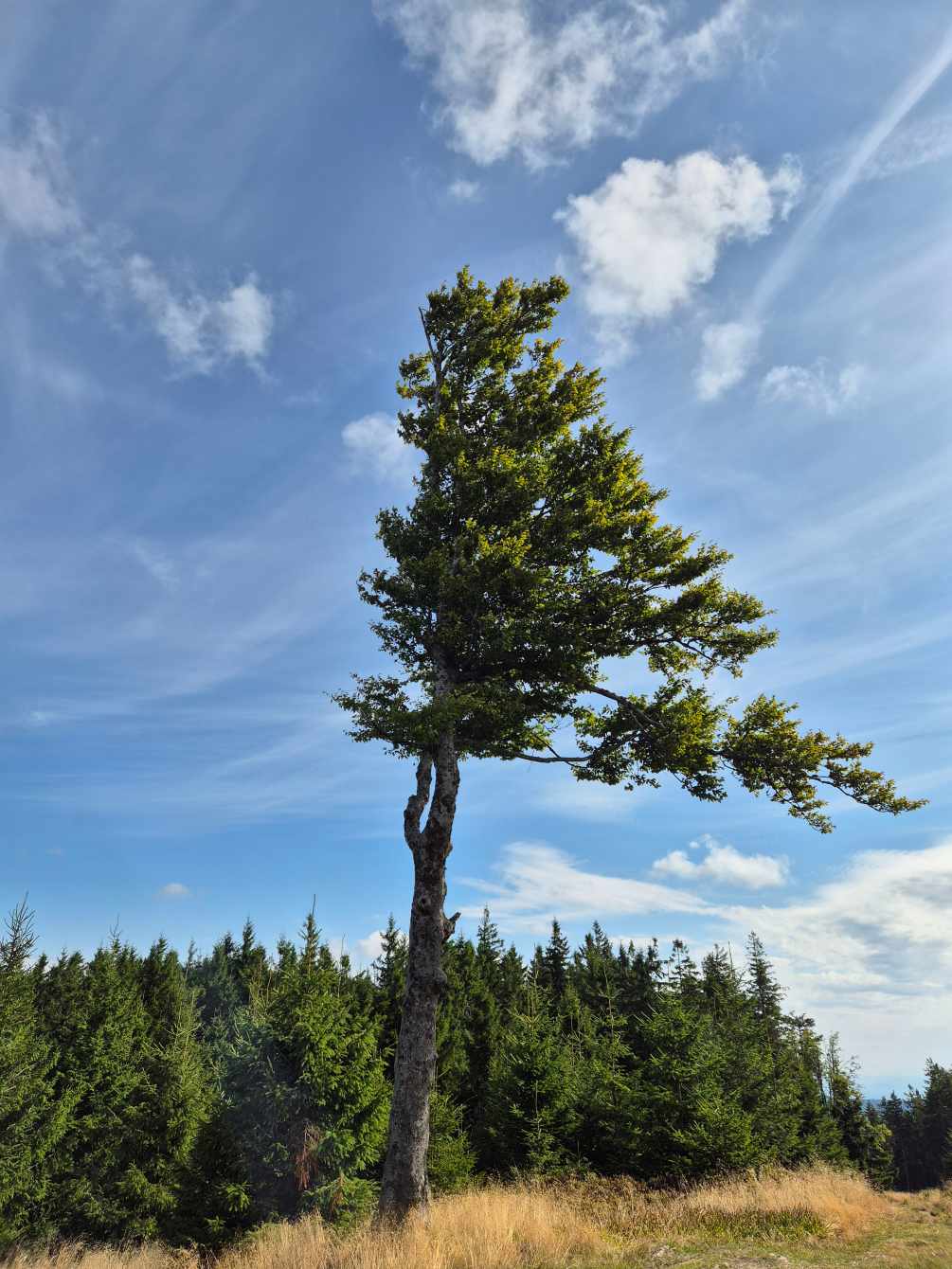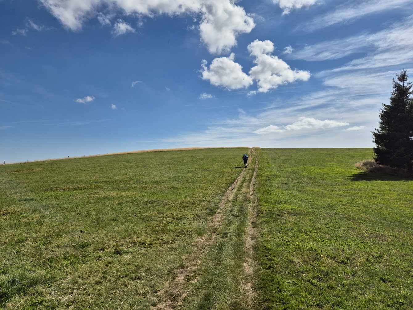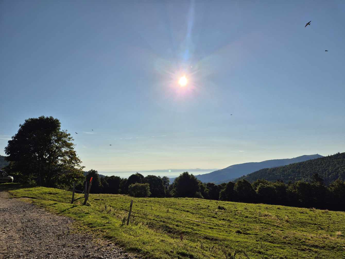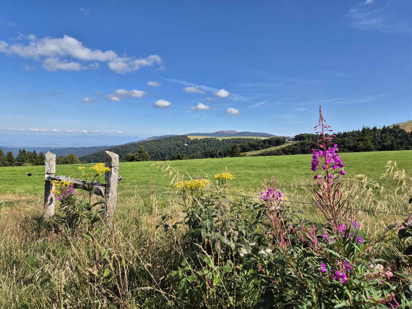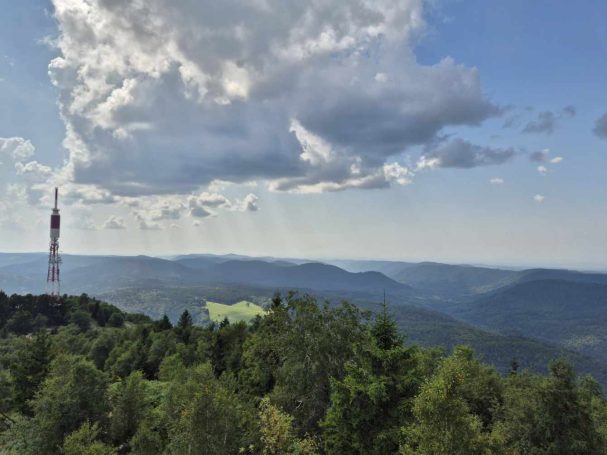 Wetter: blauer Himmel und Sonnenschein, vereinzelt Wolken, angenehme Temperatur, auf dem Grand Ballon ein frischer Wind