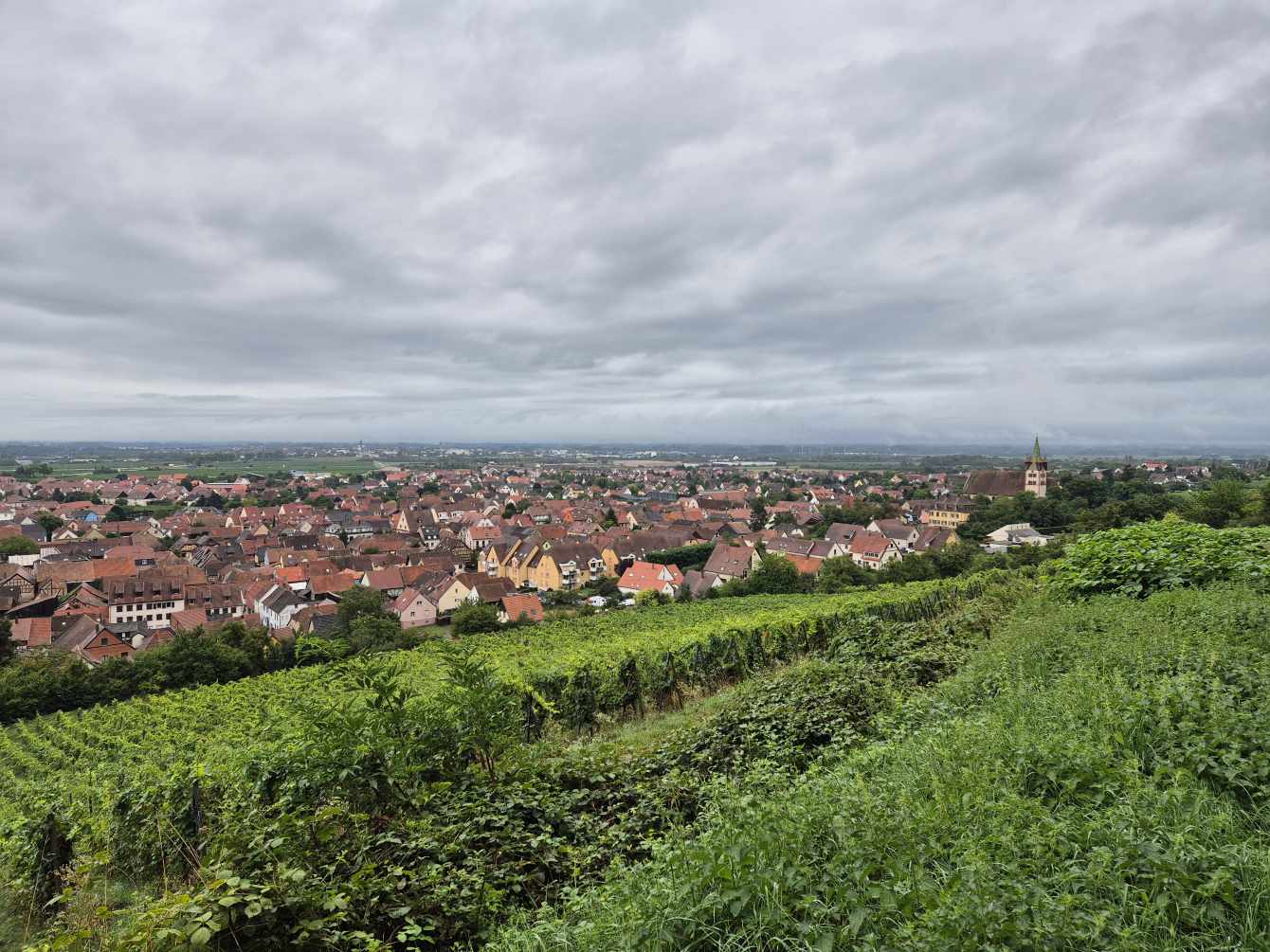 Wetter: bewölkt mit zeitweise etwas Sonne, gelegentlich ein frischer Wind, Temperatur warm bis schwül; am späteren Vormittag zieht sich über den Vogesen ein Unwetter zusammen