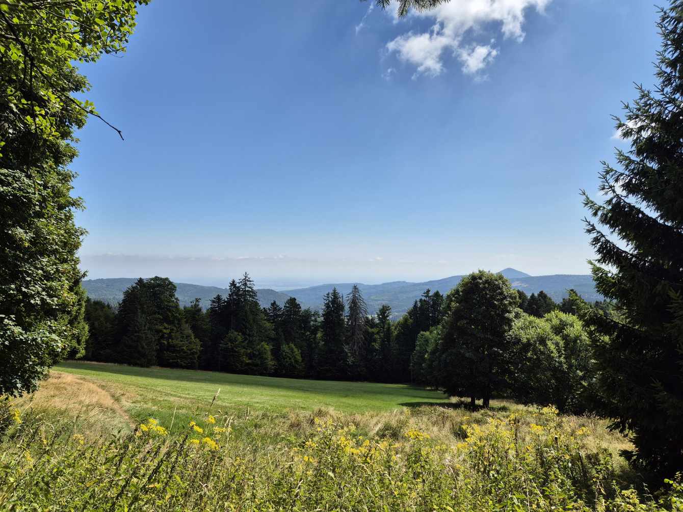 Wetter: sonnig und heiß, größtenteils blauer Himmel mit vereinzelten Wölkchen, diesig in der Ebene