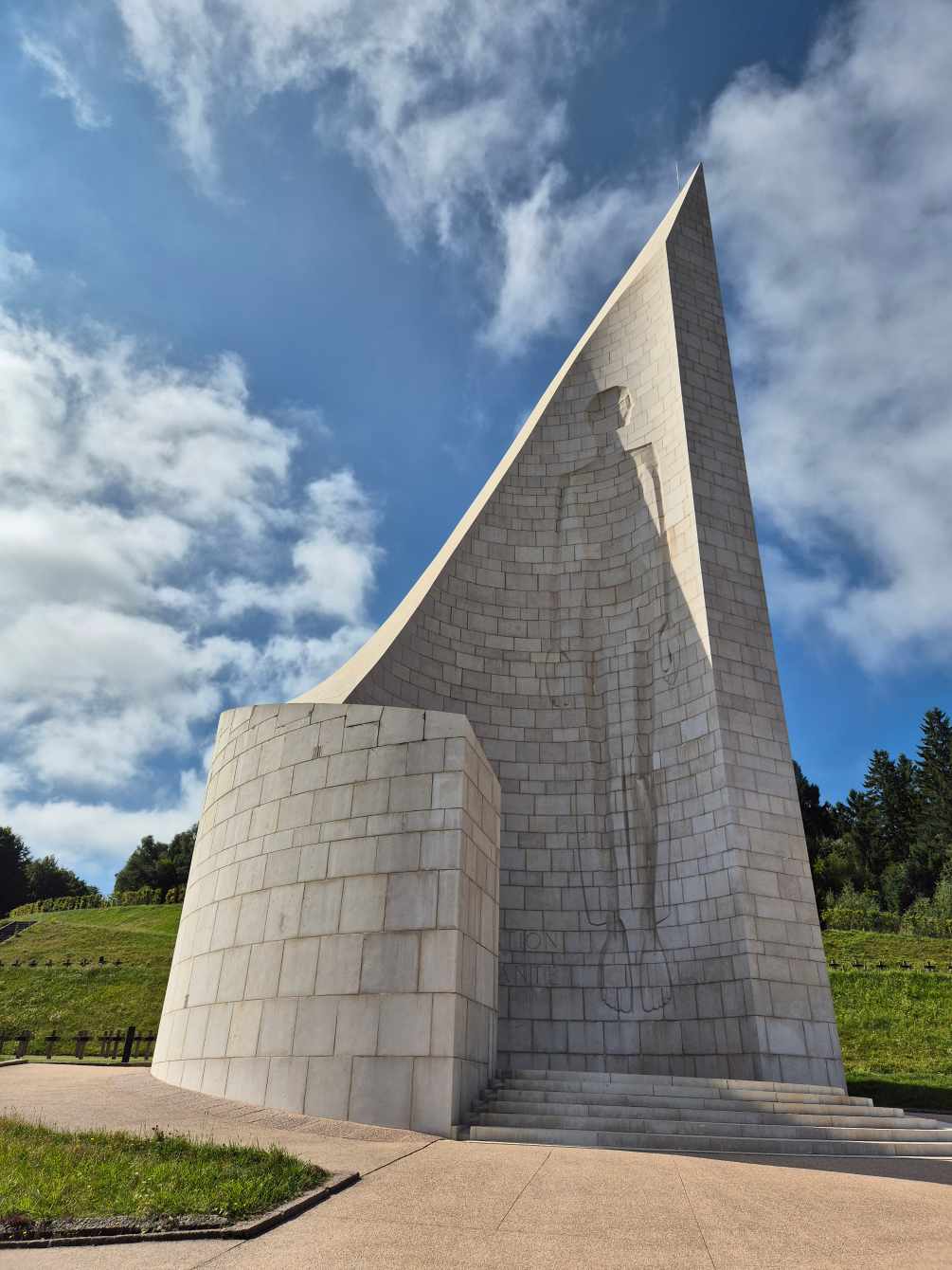 Tagesbericht: Uns erwartet am Morgen ein wolkenloser Himmel mit einem schönen Sonnenaufgang und nach einem rustikalen Frühstück machen wir uns auf den Weg. Gut zwei Stunden sind wir mit leichtem Auf und Ab auf schönen Pfaden und schmalen Wegen zumeist im Wald unterwegs - nur gelegentlich von freiem Gelände mit Ausblick ins Land unterbrochen - bis wir plötzlich aus dem Wald kommen und "am Fuß" des Grand Ballon stehen. ups - das sieht aber noch ziemlich hoch aus bis zum Gipfel! Wir passen das Tempo an die Steigung an und arbeiten uns Schritt für Schritt auf teilweise fast alpinen Pfaden "auf der Rückseite" des Berges (= abseites des Touristenzugangs) nach oben. Und dann ist es geschafft - wir stehen auf dem Grand Ballon (1424 m) und der Ausblick ist grandios! Wir verweilen eine ganze Zeit und können uns nicht satt sehen, auch wenn ein frischer Wind weht. Der Besucherandrag ist glücklicherweise eher gering, so dass wir Platz haben und nirgends "in der zweiten Reihe" stehen müssen. Irgendwann machen wir uns dann doch an den Abstieg - zuerst am Touristen-Café und einigen Bussen vorbei, bald danach sind wir wieder alleine und es geht zeitweise über eine blaue Skipiste bis wir erneut im Wald auf gewohnt schönen Pfaden weiterhin bergab unterwegs sind. Am Col Amic (825 m) legen wir an einem Rastplatz eine Pause ein. Dass hier die Straße dirket vorbeiführt ist insofern interessant, als dass wir Radfahrer bei Berg- und Tafahrt beobachten können. Verrückt mit welchem Tempo so mancher runter und auch hoch fährt. Wir setzen unseren Weg im Wald fort und dürfen einen kurzen Anstieg zur Ruine Freundstein nehmen (höchstgelegene Burg der Vogesen; 927 m), die aber nur mit Kraxelei zu ersteigen wäre, auf was wir verzichten. Es folgt eine längere Passage an teilweise steilen Waldhängen entlang auf weiterhin schmalen Pfaden und das immer in einem leichten Auf und Ab, bis wir schließlich den Col du Silberloch erreichen und ein paar Schritte später das Ehrenmal Hartmannsweilerkopf (Vieil Armand), wo im Ersten Weltkrieg die schwersten Kämpfe im Elsass tobten. Wir nehmen uns Zeit und verweilen, und lassen die beeindruckende Gestaltung dieses Ehrenmals auf uns wirken. Aus Mangel an Unterkünften direkt an unserer Strecke, müssen wir heute den GR5 deutlich verlassen und kommen mit einem weiteren knackigen Abstieg von etwas über 300 m schließlich an unserem Hotel an. EIgentlich würde das bedeuten, dass wir Morgen genau dieses Wegstück wieder hochsteigen, um dann aber über den Gipfelkamm quasi "nebendran" gleich wieder in den Nachbarort abzusteigen. Nachdem Michaela mit den Gesamthöhenmetern dieser Tour etwas bedenklich ist, plant Peter kurzerhand eine Alternativroute, die uns auf halber Höhe ebenfalls nach Thann bringen wird, wo wir dann wieder an unser Orginal anknüpfen können. Ein gutes Abendessen beschließt diesen schönen Tag, während draußen ein großer Regen mit Sturm tobt.